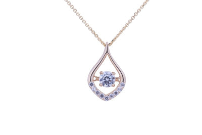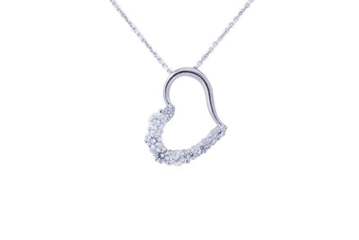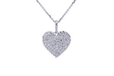 Hanging Heart Half CZ Pendant with Necklace in 14k White gold