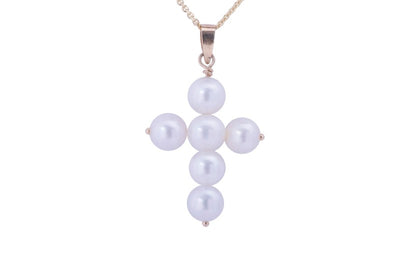 Pearl Cross Pendant with Necklace in 14k Yellow Gold