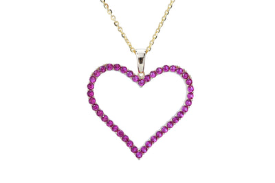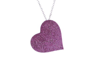 Pink Sapphire Big Heart Pendant Necklace in Sterling Silver