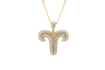 Silver Aries Zodiac Ram Yellow Gold Charm Necklace