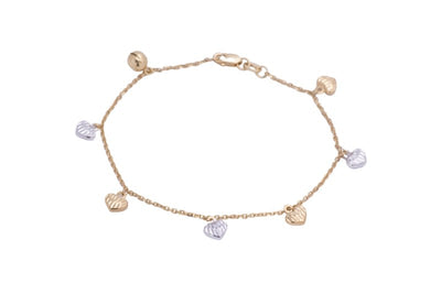 Mini Hearts Charm Bracelet in 14k Yellow and White Gold