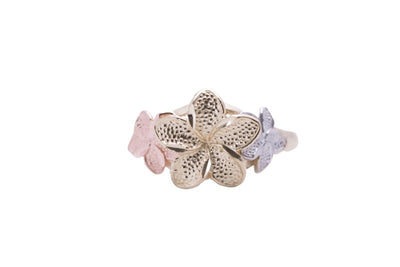 Large Five Petal Floral Ring in 14k Rose Yellow and White Gold