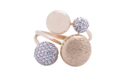Half Rounded Bead CZ Open Ring in 14k Yellow Gold