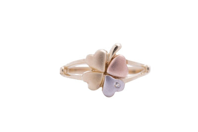 Lucky Heart Shamrock CZ Ring in 14k Yellow Rose and White Gold