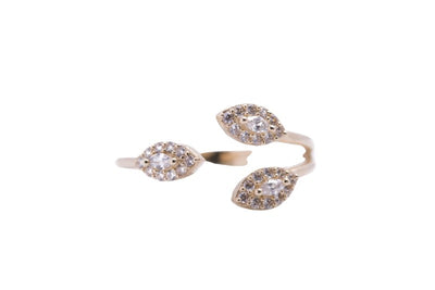 Triple Marquise Halo CZ Open Ring in 14k Yellow Gold