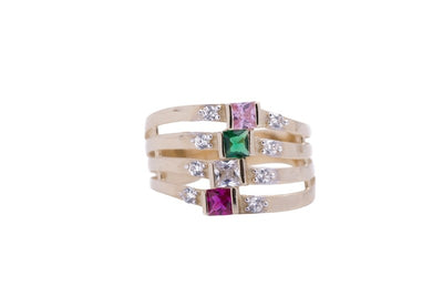Four Birthstone Ruby Emerald Pink Tourmaline Ring 14k Yellow Gold